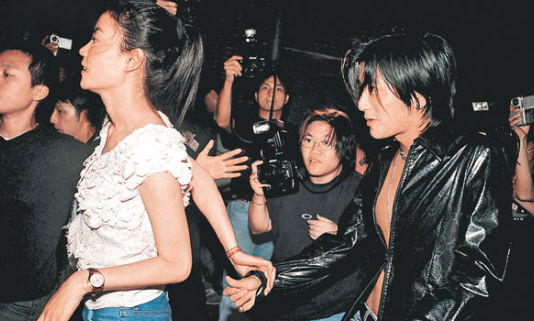 第一次牵手,是王菲当着所有记者面牵了害羞的霆锋。