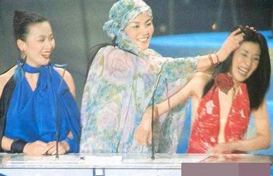 2000年4月16日,第19届香港电影金像奖颁奖礼。王菲与刘嘉玲、吴君如上台做颁奖嘉宾,没想到吴君如公开调侃王菲“霆锋也不错哦”,让王菲害羞起来,连忙推开旁边的闺密。